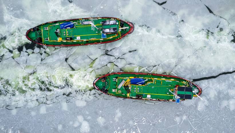 Lodołamacze kruszą lód na Zbiorniku Włocławskim