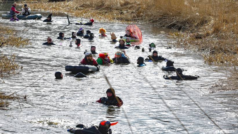 Olsztyn: kilkudziesięciu płetwonurków powitało wiosnę spływem Łyną